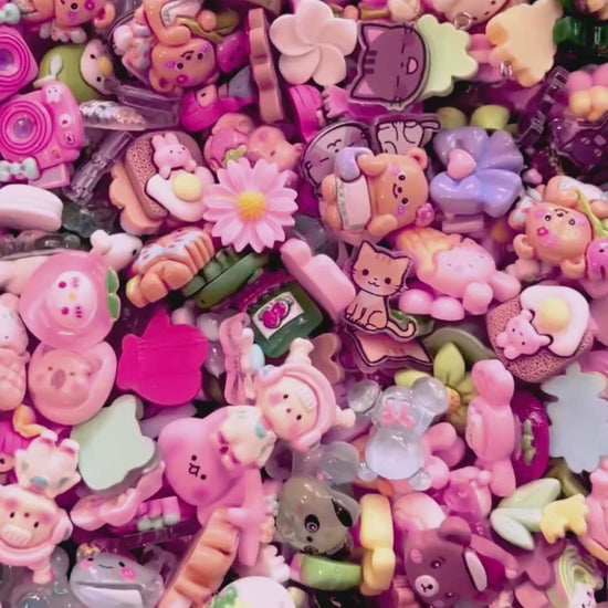 Our Charm Surprise basket is packed full of pastel, kawaii charms. Each scoop gives you a generous handful of mixed pieces. Expect mini characters, pastel beads, bag charms, phone charms, bracelet charms and other tiny treasures perfect for collecting, crafting, or decorating bags, pencil cases and keyrings.