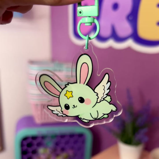Durable acrylic keychain (~51 mm tall) with a pastel clasp — perfect for bags, keys and zipper pulls.